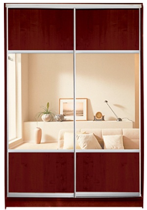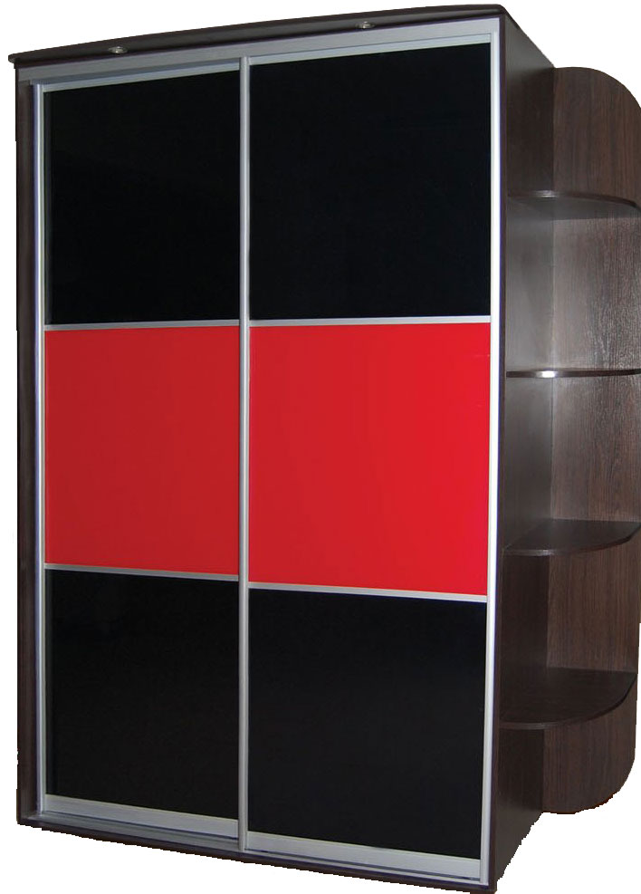 Шафа-купе виготовлений із ламінованого ДСП 16 мм, з крайкою всередині — 0,5 мм, зовні — 2 мм. Розсувна система "Ramses". У вартість шафи входять фасади з ДСП або дзеркала (дзеркало 4 мм, травмобезпечне з протисколочною плівкою). Складка шафи-купе на конфіргатах і стяжках Blum, опора шафи — пластикові ніжки — 30 мм.